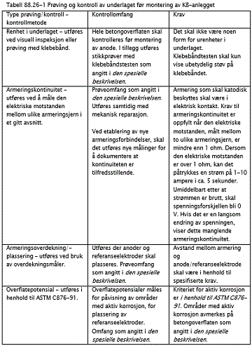 Vedlikehold, levering og montering av elektrisk utstyr for katodisk beskyttelse inngår i prosess 88.26 eller 88.337 med unntak av framføring av nettspenning (230V) fram til kontrollskap som inngår i denne prosessen.